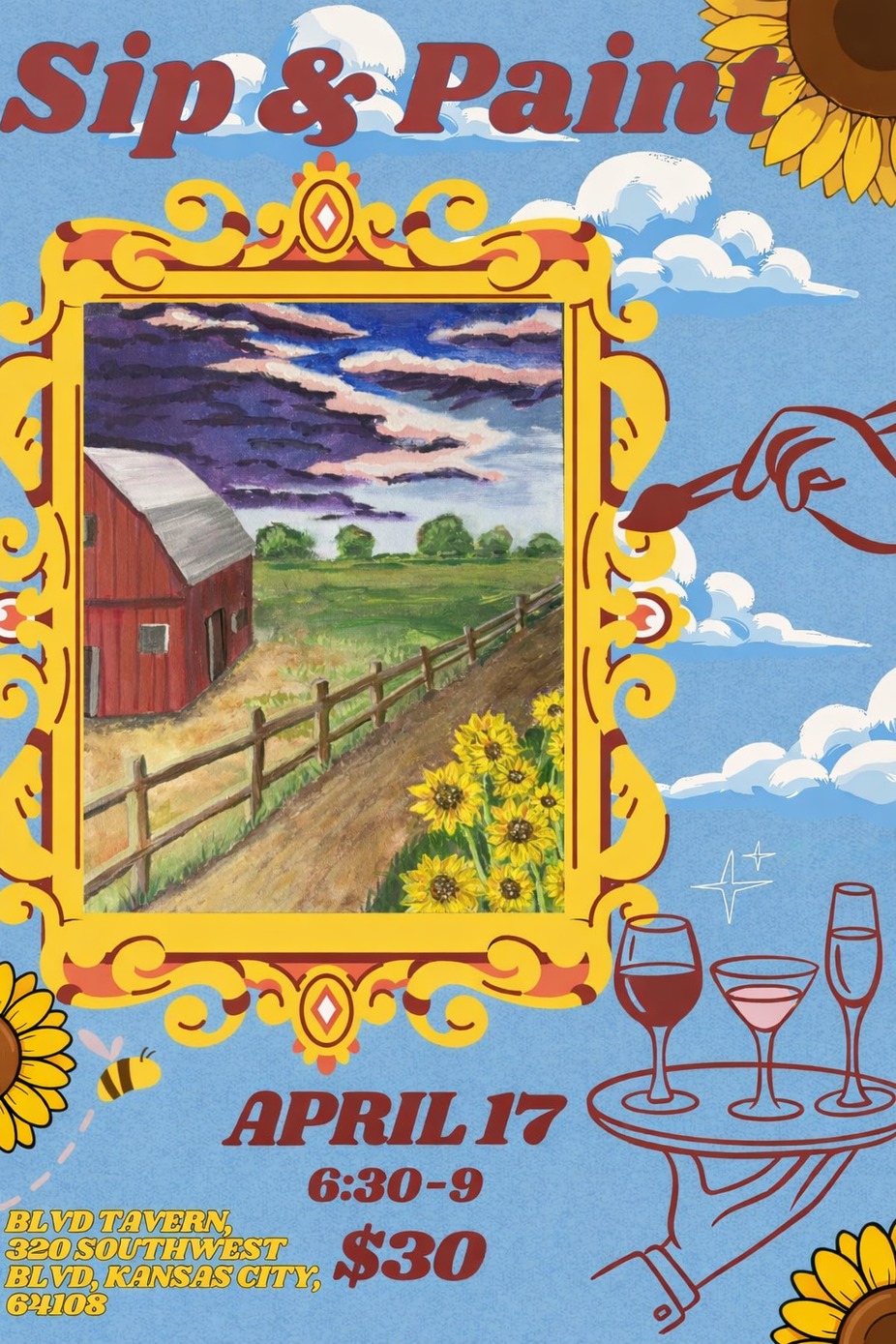 6:30pm-9pmPaint and Sip 4/17!Friday, April 17th, 2026